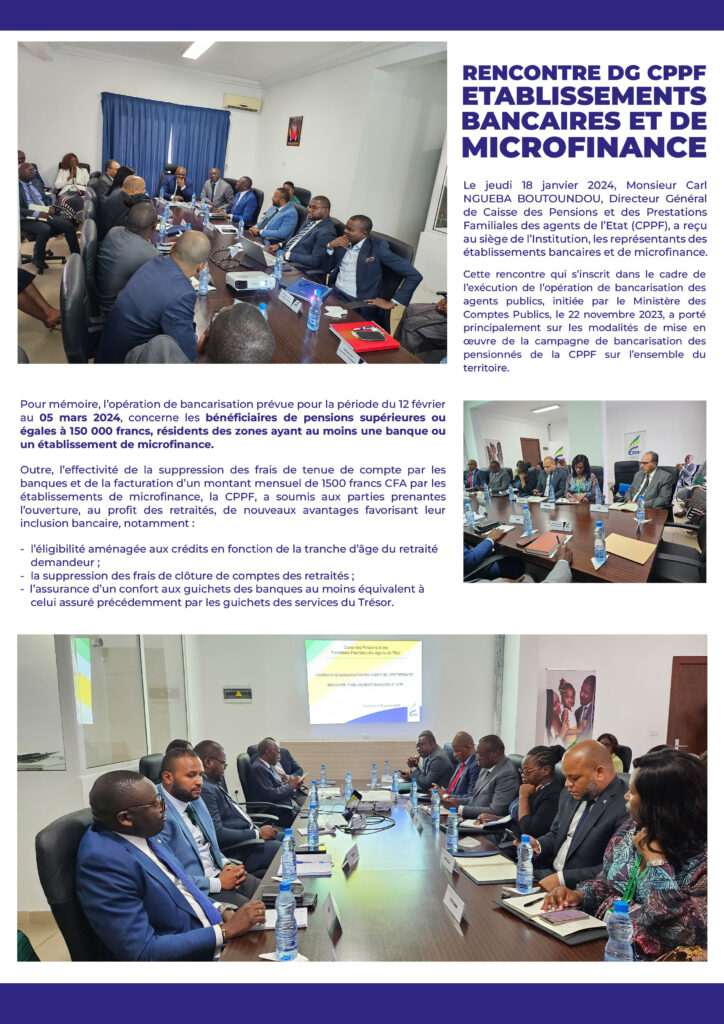 Le Directeur Général de la CPPF a rencontré les Responsables des établissements financiers, dans le cadre de la poursuite de la bancarisation des agents de l’Etat retraités et leurs ayants-cause, initiée depuis le mois de novembre 2023 par le Ministère des Comptes Publics.